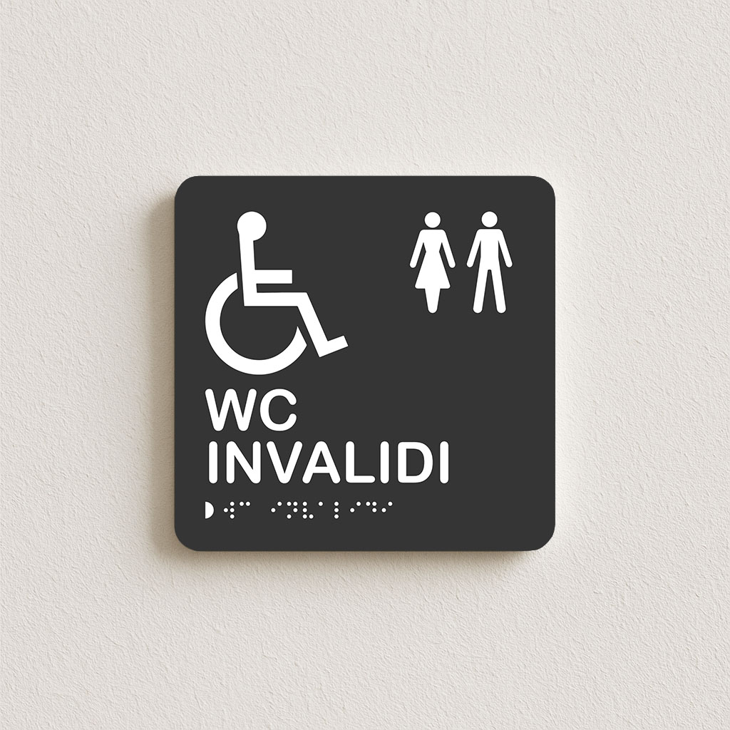 Tabla jasno označuje sanitarni prostor, ki je primeren za gibalno ovirane osebe. Vse table imajo reliefni tisk, kontrastne barve in Braillovo pisavo, kar omogoča prepoznavnost tudi slabovidnim in slepim osebam. Primerna je za javne, poslovne in pisarniške prostore.